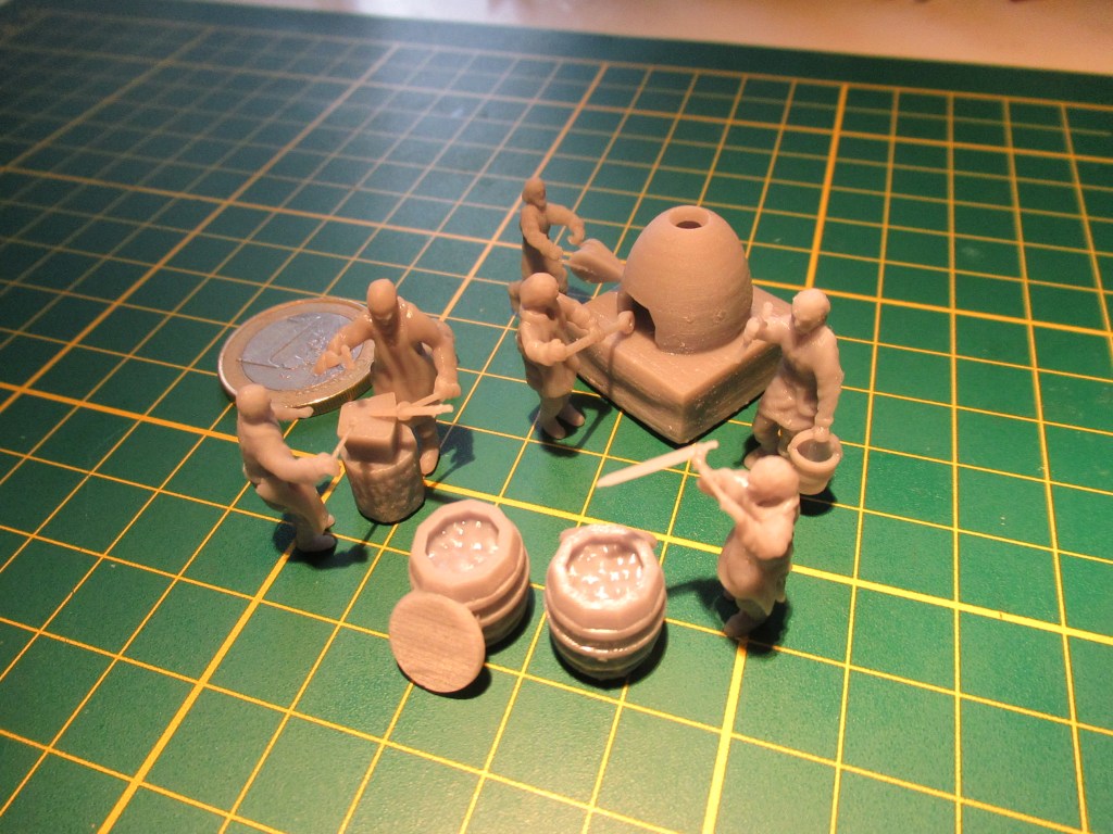 Blacksmiths at work, 6x poses; barrels, furnace buckets and anvil included.